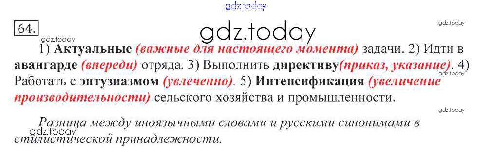 На страницах сайта gdz.today вы найдете учебный и вспомогательный материал, направленный на улучшения знаний школьной программы. ГДЗ - онлайн мир знаний Решение к упражнениям 64 Учебнику по Русскому языку для 10-11 класса Греков, Крючков Просвещение 2016