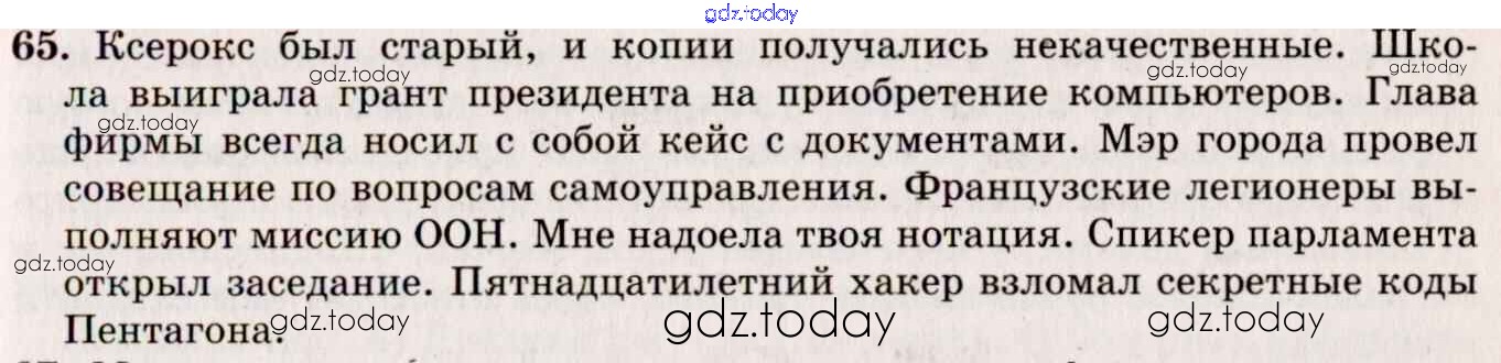 Ответы к Решение к упражнениям 65 Учебнику по Русскому языку для 10-11 класса Греков, Крючков Просвещение 2016