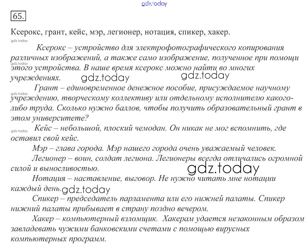На страницах сайта gdz.today вы найдете учебный и вспомогательный материал, направленный на улучшения знаний школьной программы. ГДЗ - онлайн мир знаний Решение к упражнениям 65 Учебнику по Русскому языку для 10-11 класса Греков, Крючков Просвещение 2016