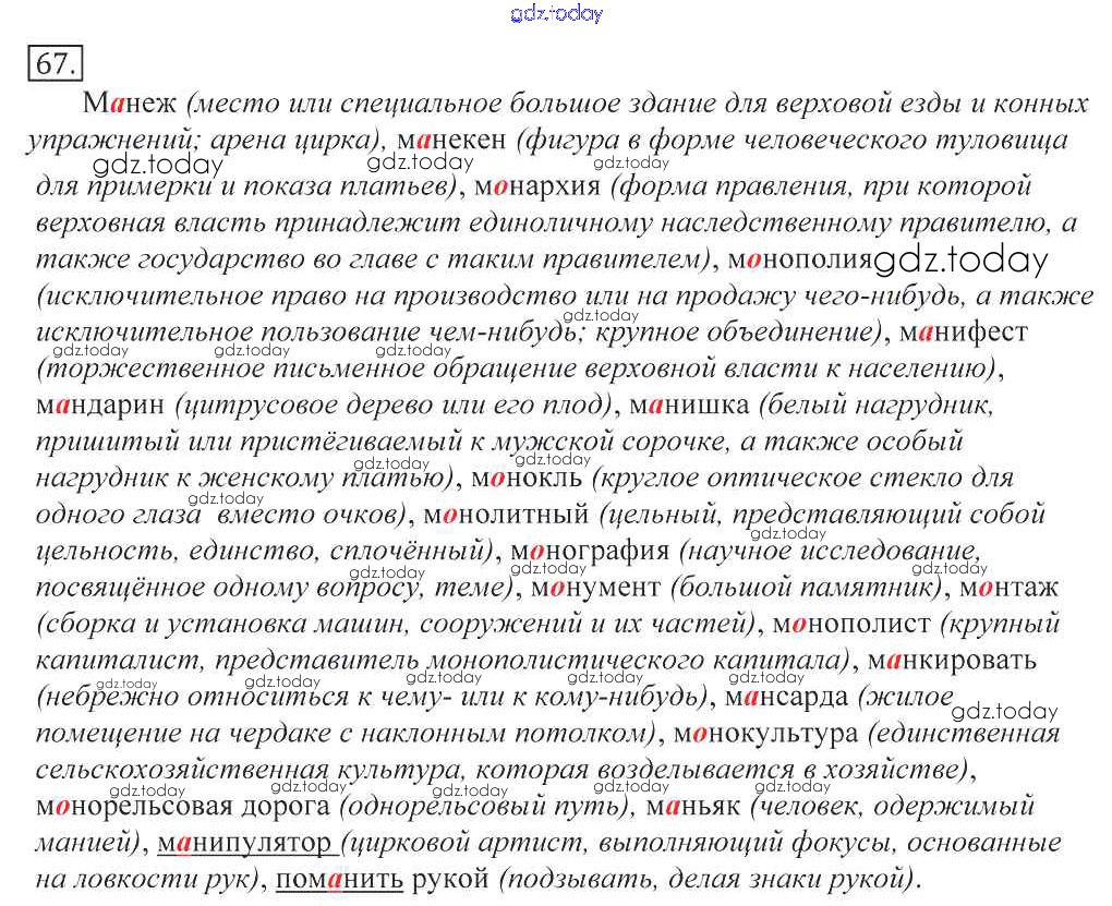 На страницах сайта gdz.today вы найдете учебный и вспомогательный материал, направленный на улучшения знаний школьной программы. ГДЗ - онлайн мир знаний Решение к упражнениям 67 Учебнику по Русскому языку для 10-11 класса Греков, Крючков Просвещение 2016