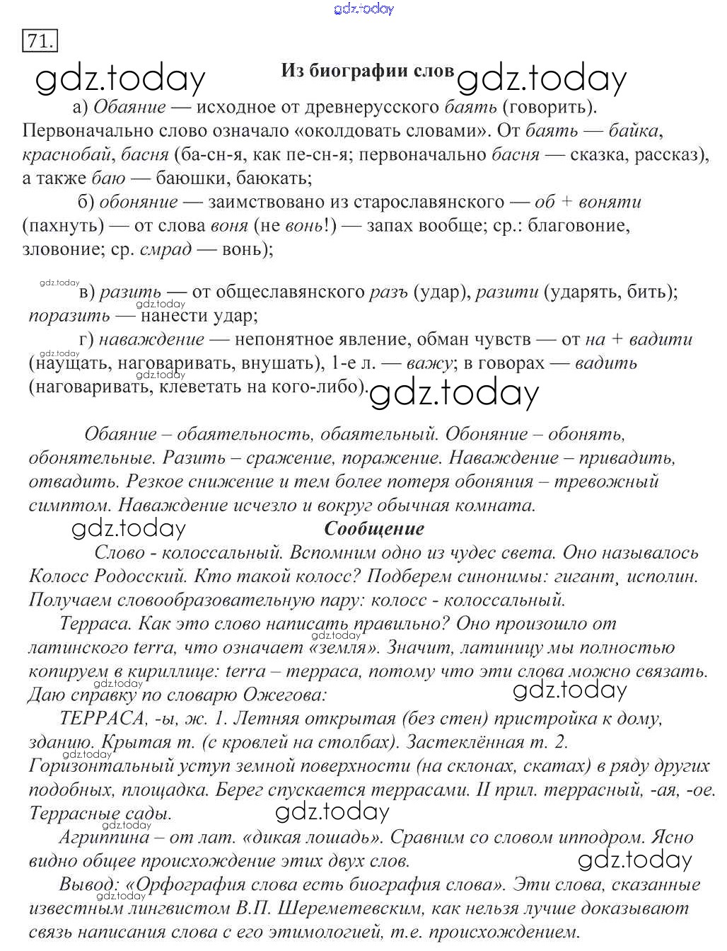 На страницах сайта gdz.today вы найдете учебный и вспомогательный материал, направленный на улучшения знаний школьной программы. ГДЗ - онлайн мир знаний Решение к упражнениям 71 Учебнику по Русскому языку для 10-11 класса Греков, Крючков Просвещение 2016
