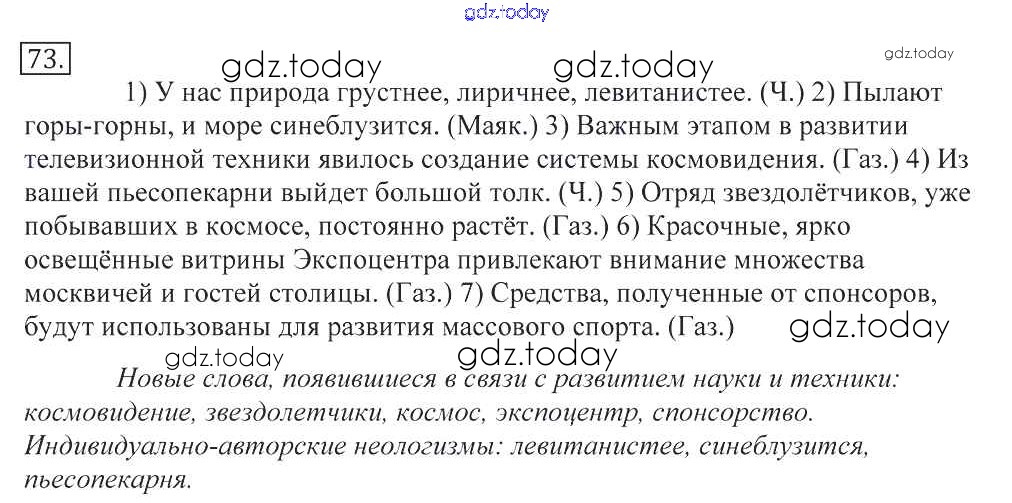На страницах сайта gdz.today вы найдете учебный и вспомогательный материал, направленный на улучшения знаний школьной программы. ГДЗ - онлайн мир знаний Решение к упражнениям 73 Учебнику по Русскому языку для 10-11 класса Греков, Крючков Просвещение 2016
