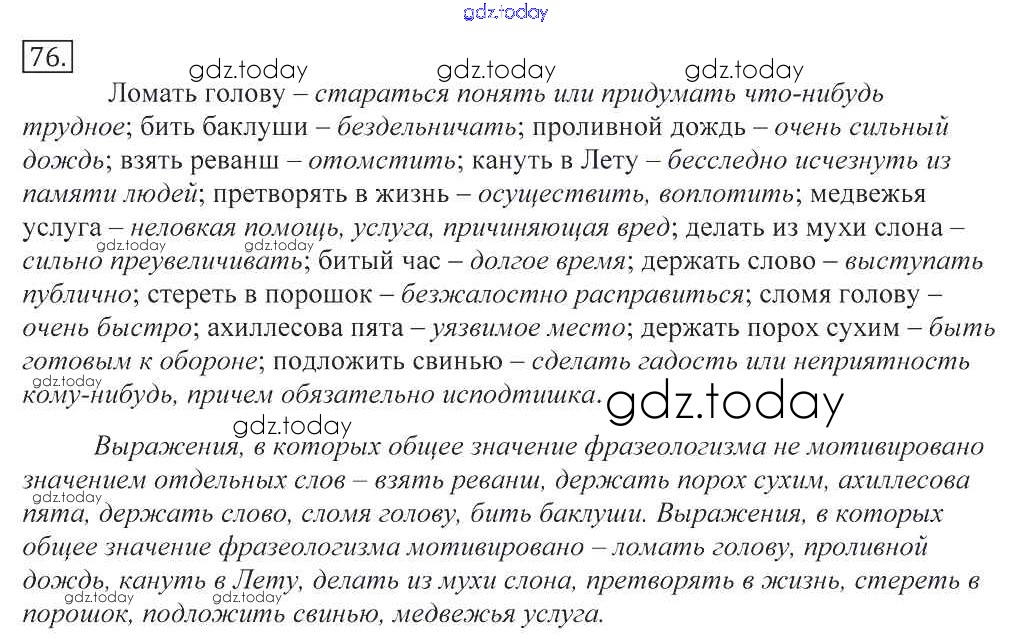 На страницах сайта gdz.today вы найдете учебный и вспомогательный материал, направленный на улучшения знаний школьной программы. ГДЗ - онлайн мир знаний Решение к упражнениям 76 Учебнику по Русскому языку для 10-11 класса Греков, Крючков Просвещение 2016