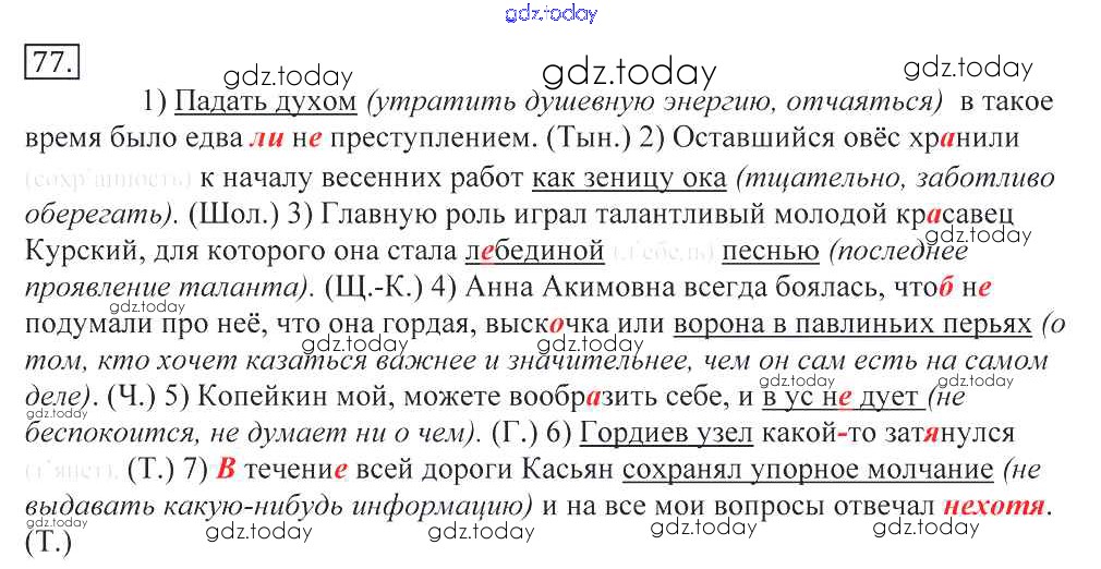 На страницах сайта gdz.today вы найдете учебный и вспомогательный материал, направленный на улучшения знаний школьной программы. ГДЗ - онлайн мир знаний Решение к упражнениям 77 Учебнику по Русскому языку для 10-11 класса Греков, Крючков Просвещение 2016