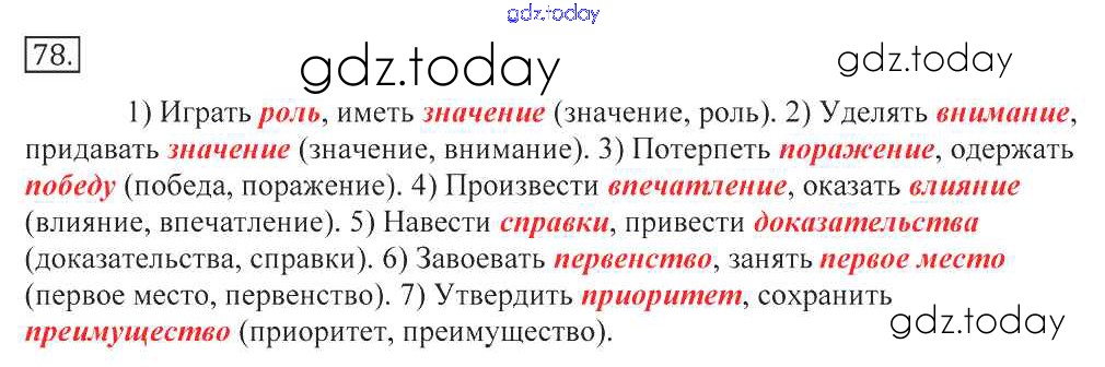 На страницах сайта gdz.today вы найдете учебный и вспомогательный материал, направленный на улучшения знаний школьной программы. ГДЗ - онлайн мир знаний Решение к упражнениям 78 Учебнику по Русскому языку для 10-11 класса Греков, Крючков Просвещение 2016