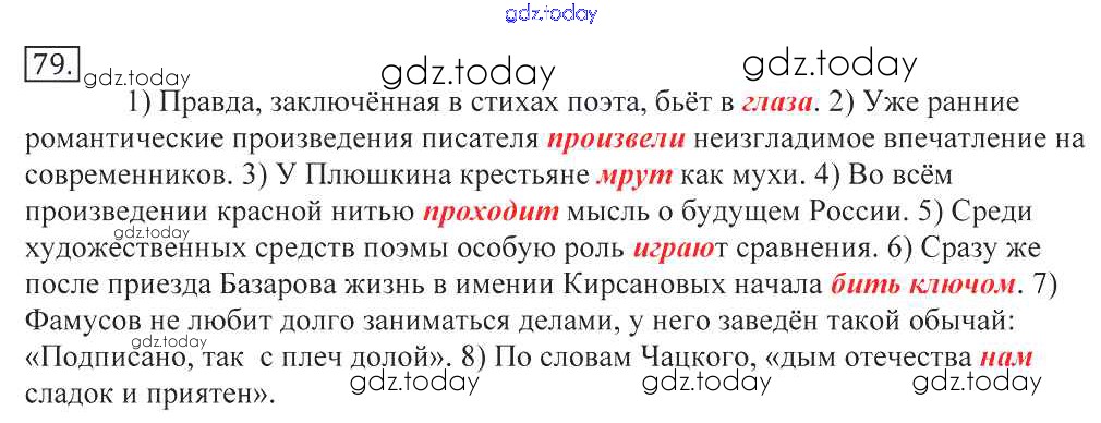 На страницах сайта gdz.today вы найдете учебный и вспомогательный материал, направленный на улучшения знаний школьной программы. ГДЗ - онлайн мир знаний Решение к упражнениям 79 Учебнику по Русскому языку для 10-11 класса Греков, Крючков Просвещение 2016