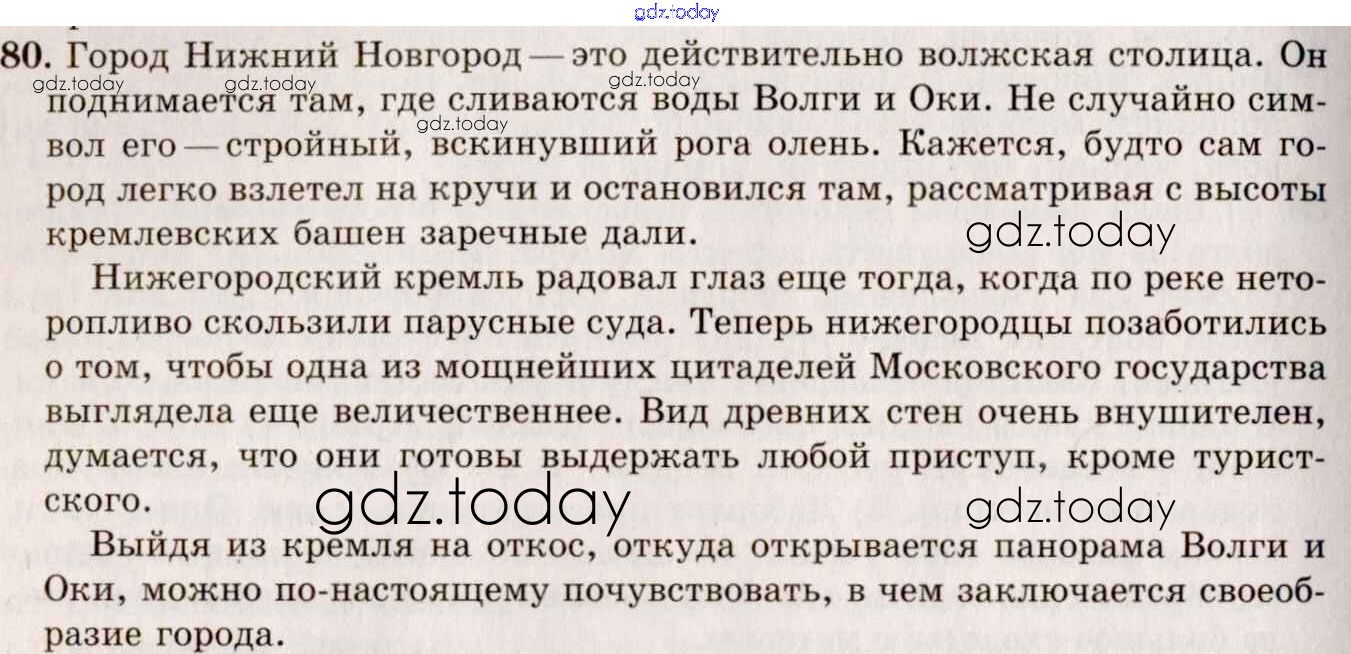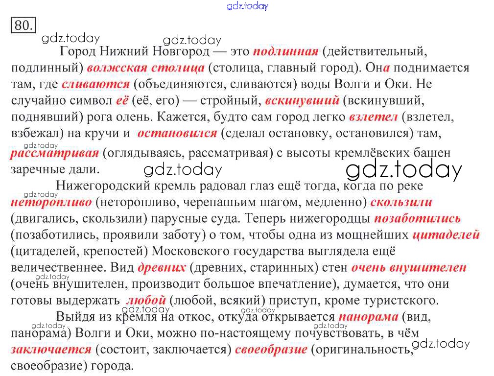 На страницах сайта gdz.today вы найдете учебный и вспомогательный материал, направленный на улучшения знаний школьной программы. ГДЗ - онлайн мир знаний Решение к упражнениям 80 Учебнику по Русскому языку для 10-11 класса Греков, Крючков Просвещение 2016