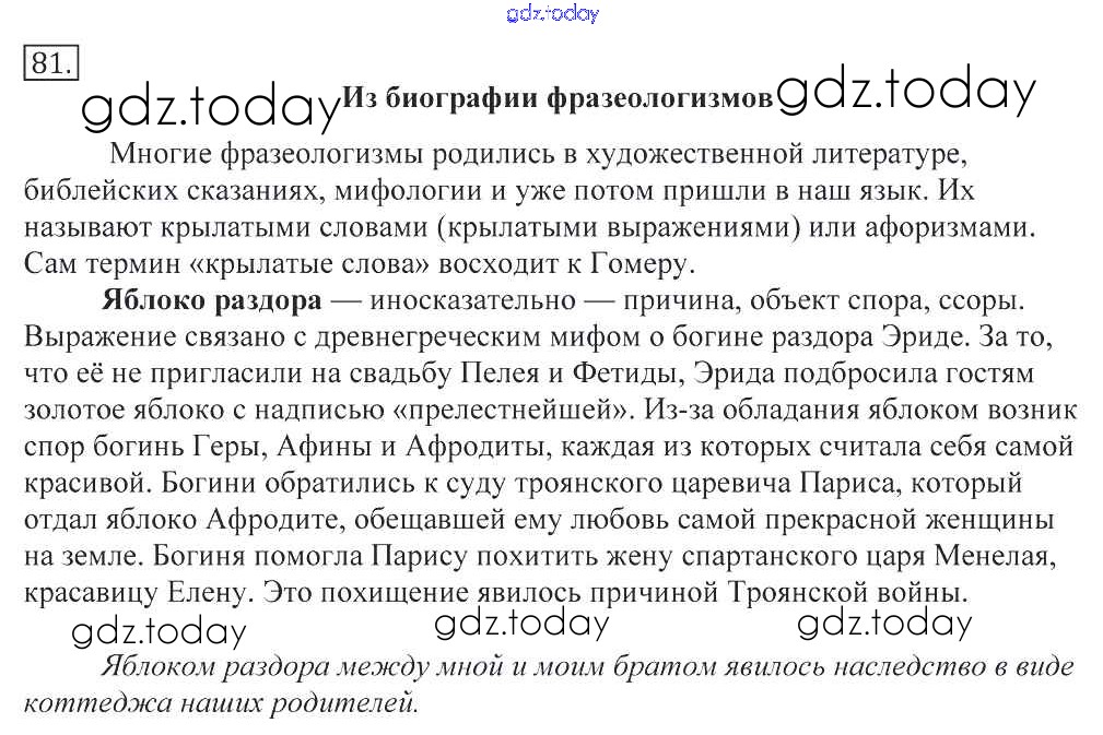 На страницах сайта gdz.today вы найдете учебный и вспомогательный материал, направленный на улучшения знаний школьной программы. ГДЗ - онлайн мир знаний Решение к упражнениям 81 Учебнику по Русскому языку для 10-11 класса Греков, Крючков Просвещение 2016
