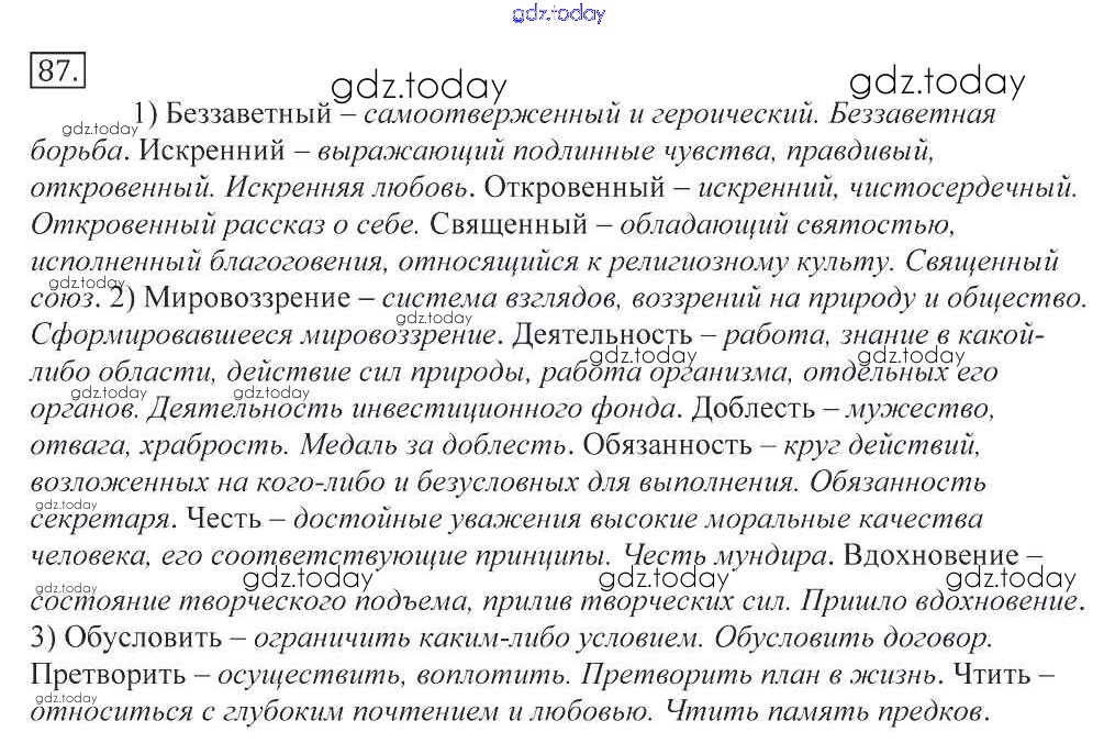 На страницах сайта gdz.today вы найдете учебный и вспомогательный материал, направленный на улучшения знаний школьной программы. ГДЗ - онлайн мир знаний Решение к упражнениям 87 Учебнику по Русскому языку для 10-11 класса Греков, Крючков Просвещение 2016