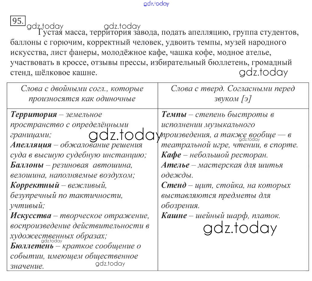 На страницах сайта gdz.today вы найдете учебный и вспомогательный материал, направленный на улучшения знаний школьной программы. ГДЗ - онлайн мир знаний Решение к упражнениям 95 Учебнику по Русскому языку для 10-11 класса Греков, Крючков Просвещение 2016