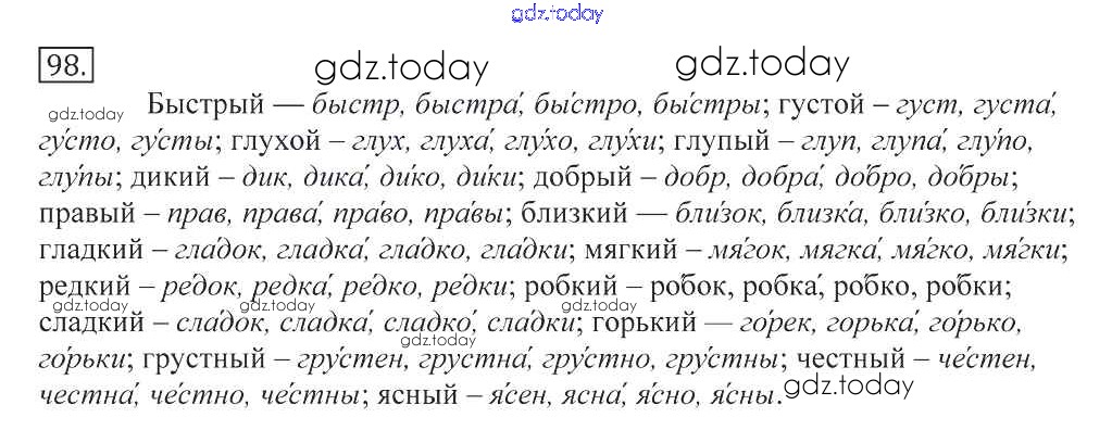 На страницах сайта gdz.today вы найдете учебный и вспомогательный материал, направленный на улучшения знаний школьной программы. ГДЗ - онлайн мир знаний Решение к упражнениям 98 Учебнику по Русскому языку для 10-11 класса Греков, Крючков Просвещение 2016