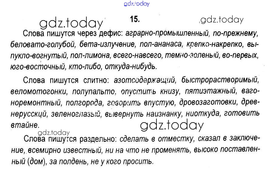 На страницах сайта gdz.today вы найдете учебный и вспомогательный материал, направленный на улучшения знаний школьной программы. ГДЗ - онлайн мир знаний Решение к упражнениям 15 Учебнику по Русскому языку для 11 класса Мурина, Литвинко Национальный институт образования 2017