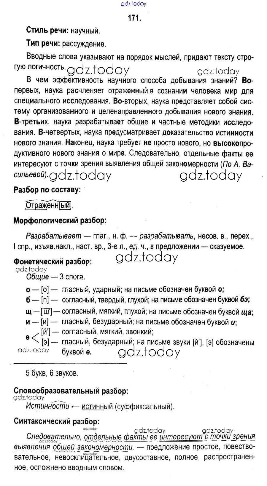 На страницах сайта gdz.today вы найдете учебный и вспомогательный материал, направленный на улучшения знаний школьной программы. ГДЗ - онлайн мир знаний Решение к упражнениям 171 Учебнику по Русскому языку для 11 класса Мурина, Литвинко Национальный институт образования 2017