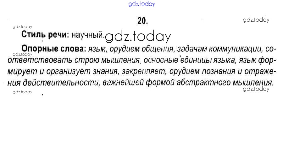 На страницах сайта gdz.today вы найдете учебный и вспомогательный материал, направленный на улучшения знаний школьной программы. ГДЗ - онлайн мир знаний Решение к упражнениям 20 Учебнику по Русскому языку для 11 класса Мурина, Литвинко Национальный институт образования 2017