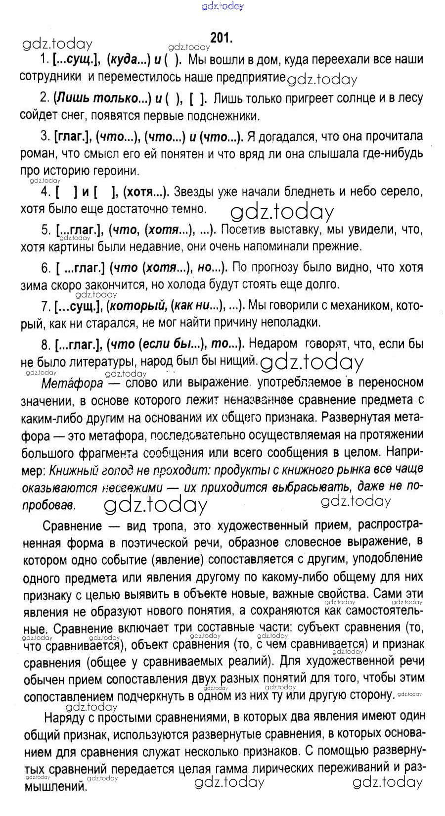 На страницах сайта gdz.today вы найдете учебный и вспомогательный материал, направленный на улучшения знаний школьной программы. ГДЗ - онлайн мир знаний Решение к упражнениям 201 Учебнику по Русскому языку для 11 класса Мурина, Литвинко Национальный институт образования 2017