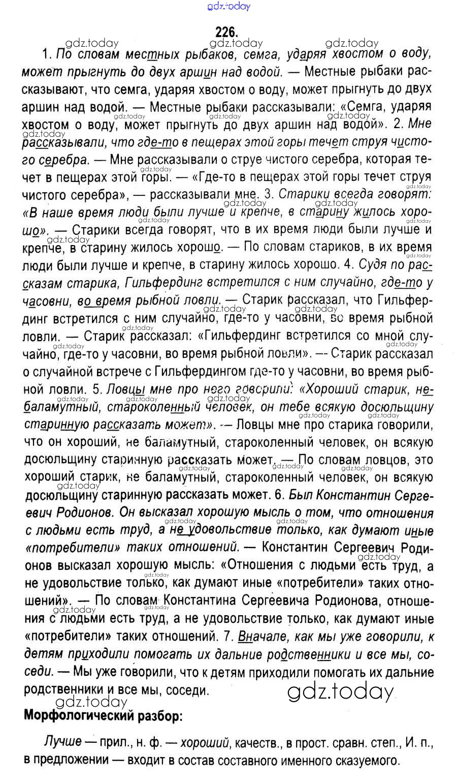 На страницах сайта gdz.today вы найдете учебный и вспомогательный материал, направленный на улучшения знаний школьной программы. ГДЗ - онлайн мир знаний Решение к упражнениям 226 Учебнику по Русскому языку для 11 класса Мурина, Литвинко Национальный институт образования 2017