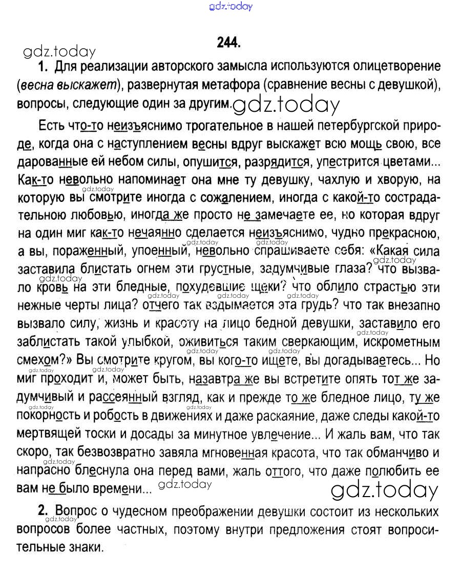 На страницах сайта gdz.today вы найдете учебный и вспомогательный материал, направленный на улучшения знаний школьной программы. ГДЗ - онлайн мир знаний Решение к упражнениям 244 Учебнику по Русскому языку для 11 класса Мурина, Литвинко Национальный институт образования 2017