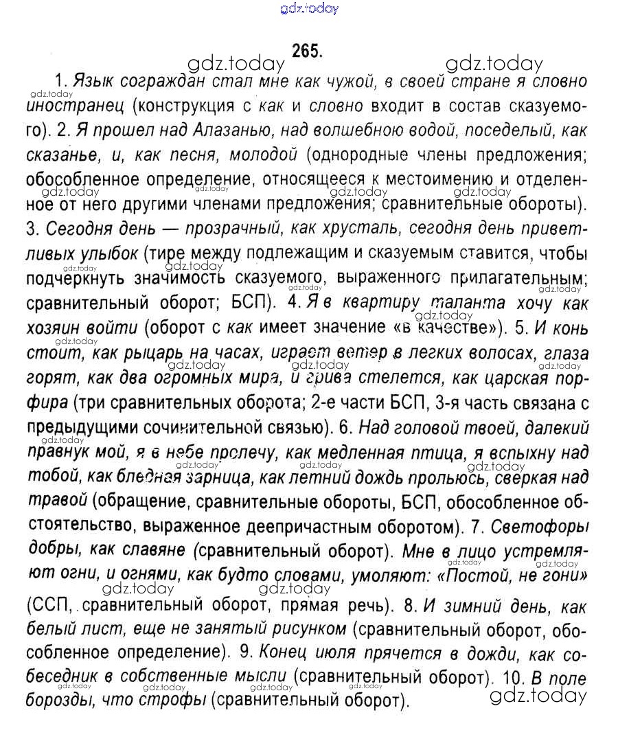 На страницах сайта gdz.today вы найдете учебный и вспомогательный материал, направленный на улучшения знаний школьной программы. ГДЗ - онлайн мир знаний Решение к упражнениям 265 Учебнику по Русскому языку для 11 класса Мурина, Литвинко Национальный институт образования 2017
