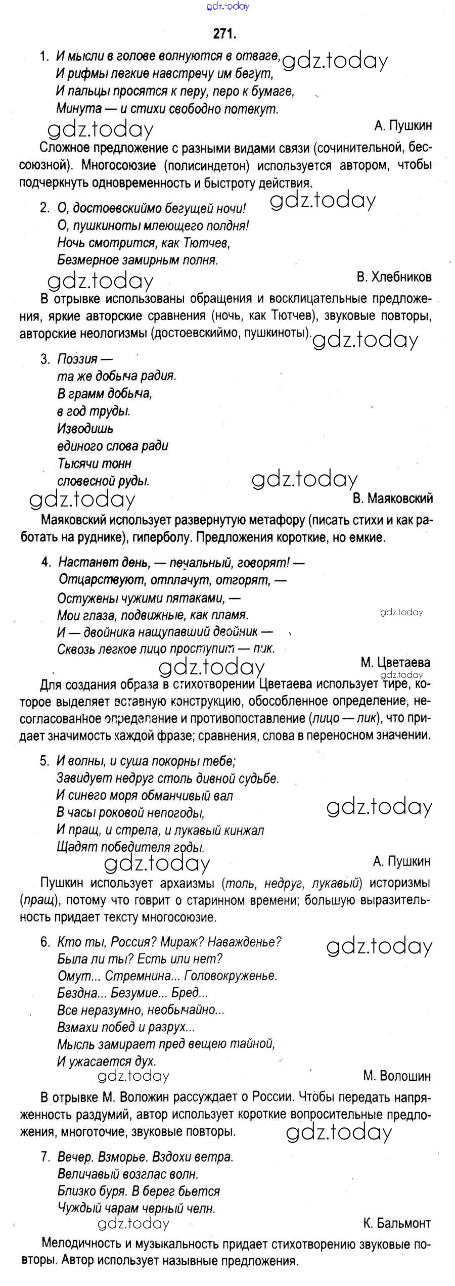 На страницах сайта gdz.today вы найдете учебный и вспомогательный материал, направленный на улучшения знаний школьной программы. ГДЗ - онлайн мир знаний Решение к упражнениям 271 Учебнику по Русскому языку для 11 класса Мурина, Литвинко Национальный институт образования 2017