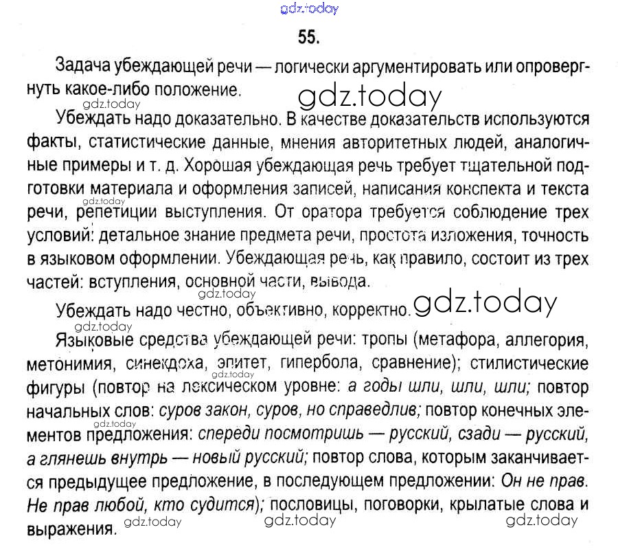 На страницах сайта gdz.today вы найдете учебный и вспомогательный материал, направленный на улучшения знаний школьной программы. ГДЗ - онлайн мир знаний Решение к упражнениям 55 Учебнику по Русскому языку для 11 класса Мурина, Литвинко Национальный институт образования 2017