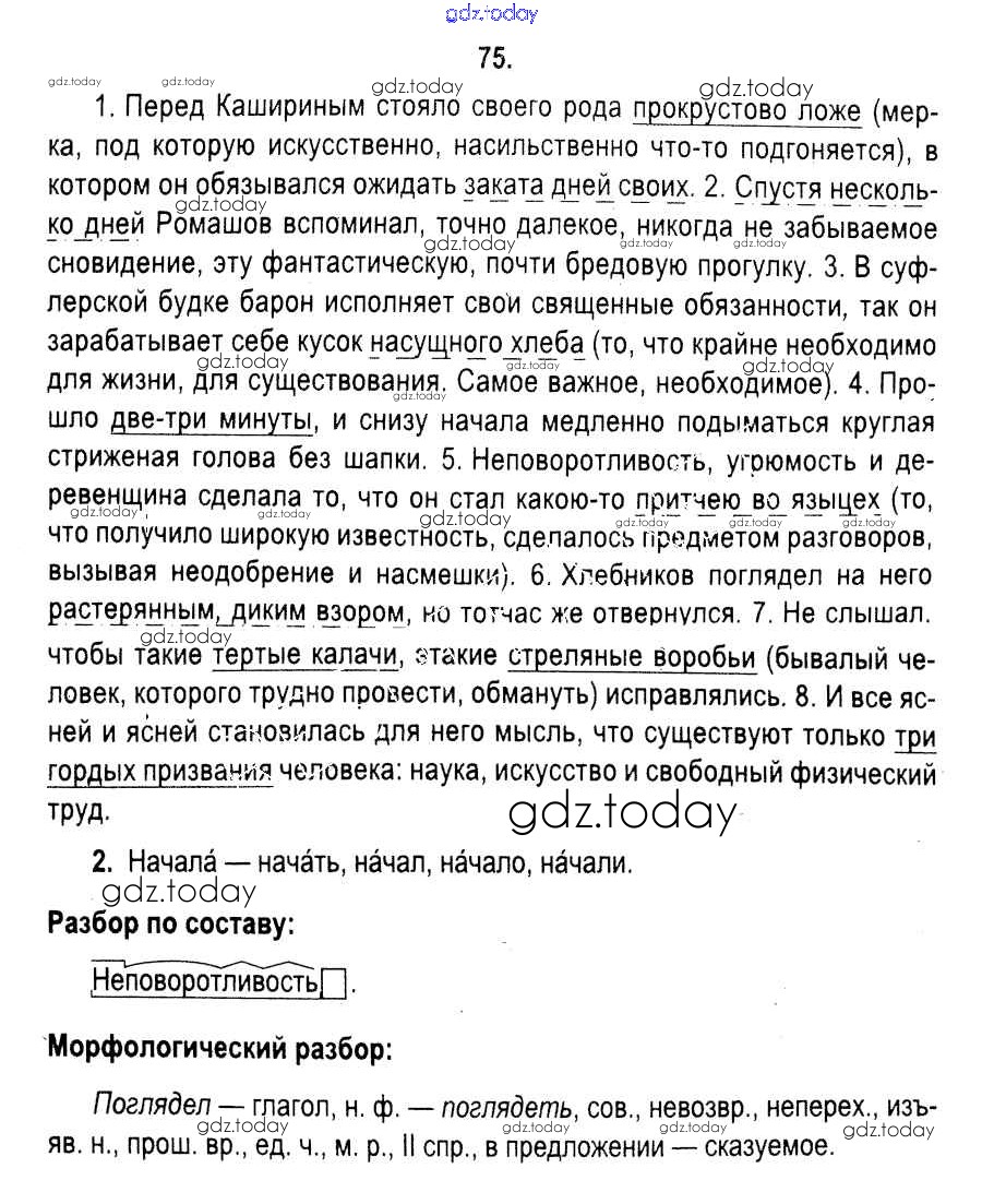 На страницах сайта gdz.today вы найдете учебный и вспомогательный материал, направленный на улучшения знаний школьной программы. ГДЗ - онлайн мир знаний Решение к упражнениям 75 Учебнику по Русскому языку для 11 класса Мурина, Литвинко Национальный институт образования 2017