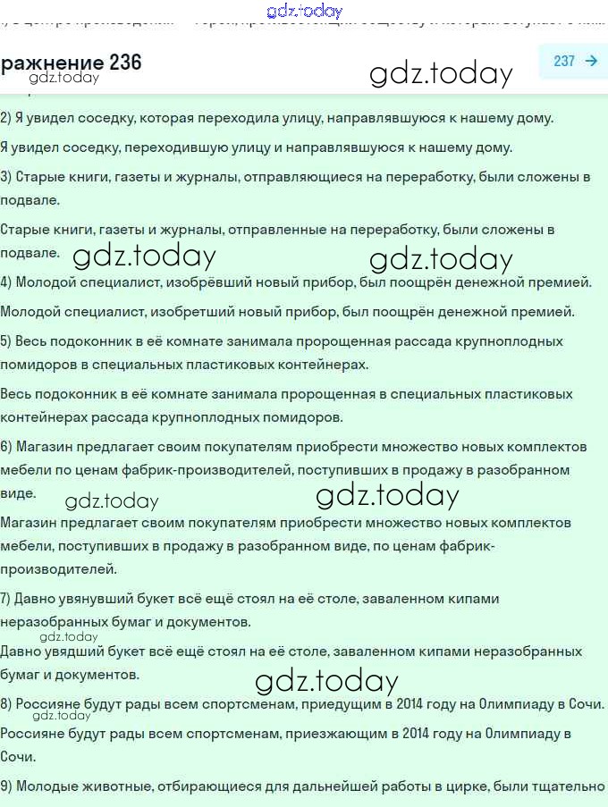 На страницах сайта gdz.today вы найдете учебный и вспомогательный материал, направленный на улучшения знаний школьной программы. ГДЗ - онлайн мир знаний Решение. Упражнения 236 Учебнику по Русскому языку для 11 класса Гусарова Базовый и углубленный уровень Просвещение 2022