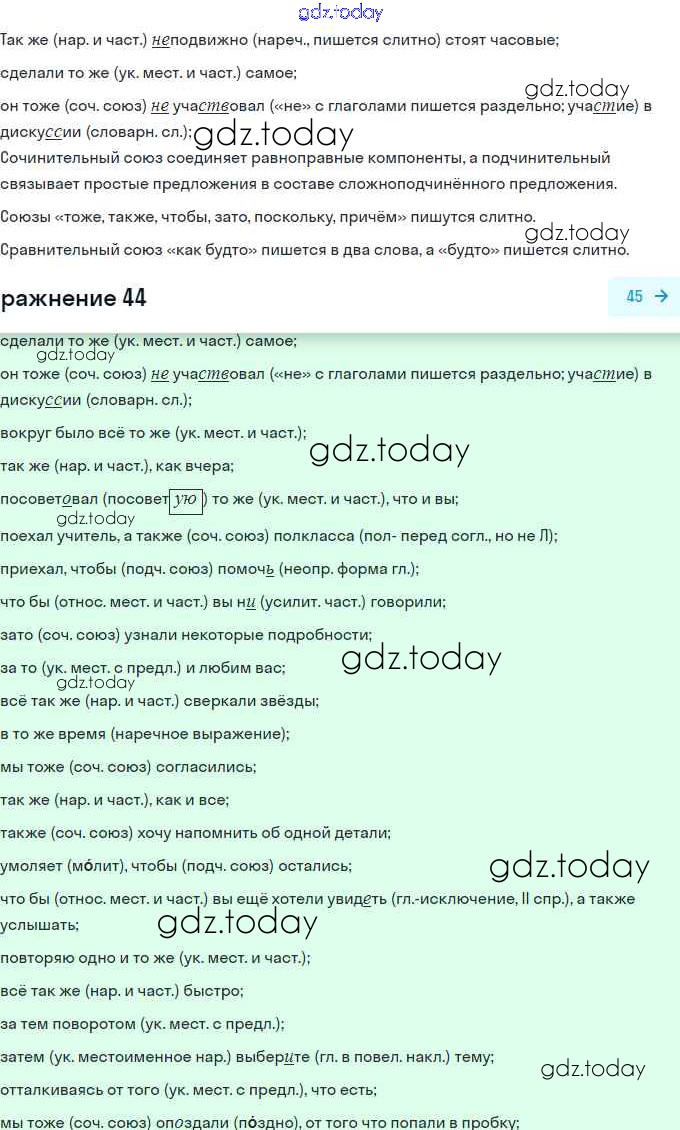 На страницах сайта gdz.today вы найдете учебный и вспомогательный материал, направленный на улучшения знаний школьной программы. ГДЗ - онлайн мир знаний Решение. Упражнения 44 Учебнику по Русскому языку для 11 класса Гусарова Базовый и углубленный уровень Просвещение 2022