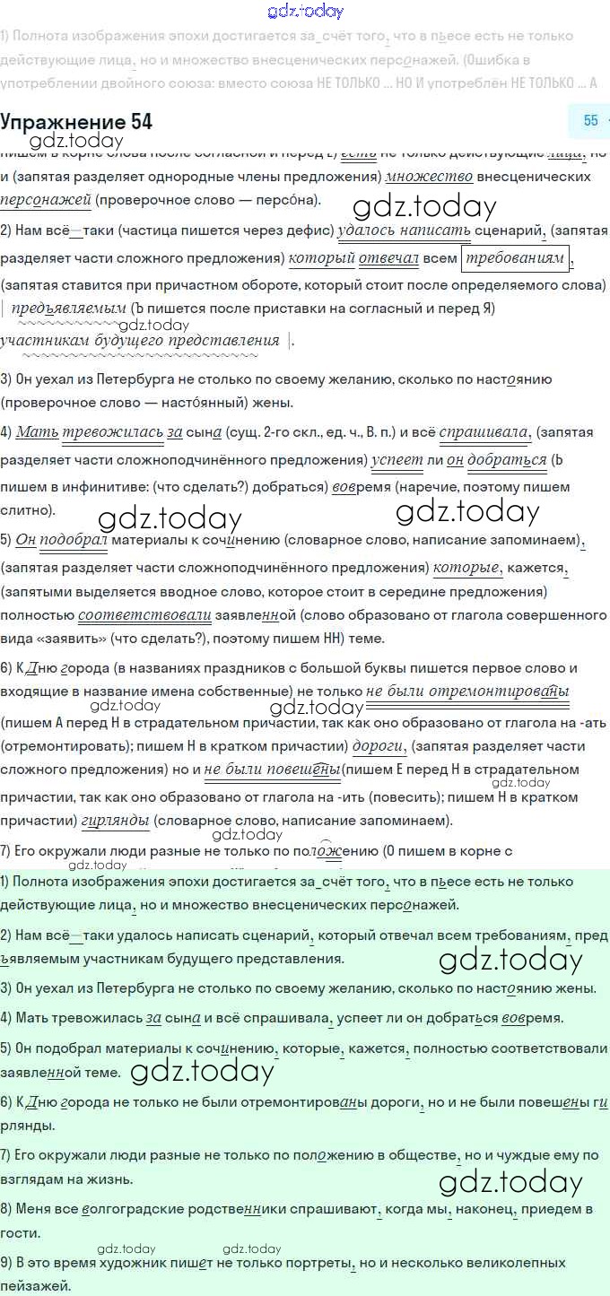 На страницах сайта gdz.today вы найдете учебный и вспомогательный материал, направленный на улучшения знаний школьной программы. ГДЗ - онлайн мир знаний Решение. Упражнения 54 Учебнику по Русскому языку для 11 класса Гусарова Базовый и углубленный уровень Просвещение 2022