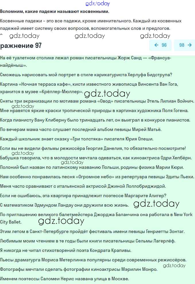 На страницах сайта gdz.today вы найдете учебный и вспомогательный материал, направленный на улучшения знаний школьной программы. ГДЗ - онлайн мир знаний Решение. Упражнения 97 Учебнику по Русскому языку для 11 класса Гусарова Базовый и углубленный уровень Просвещение 2022