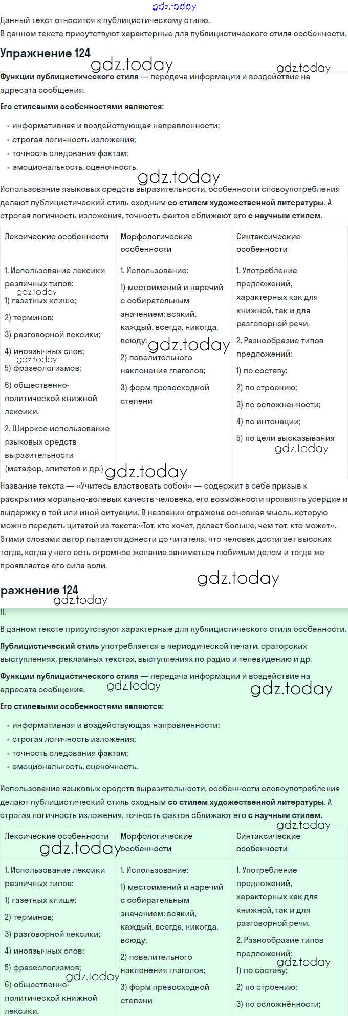 На страницах сайта gdz.today вы найдете учебный и вспомогательный материал, направленный на улучшения знаний школьной программы. ГДЗ - онлайн мир знаний Решение. Упражнения 124 Учебнику по Русскому языку для 11 класса Львова, Львов Базовый и углубленный уровень Мнемозина 2016