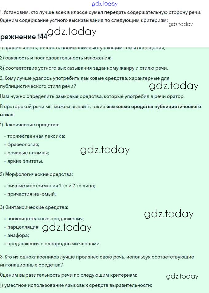 На страницах сайта gdz.today вы найдете учебный и вспомогательный материал, направленный на улучшения знаний школьной программы. ГДЗ - онлайн мир знаний Решение. Упражнения 144 Учебнику по Русскому языку для 11 класса Львова, Львов Базовый и углубленный уровень Мнемозина 2016