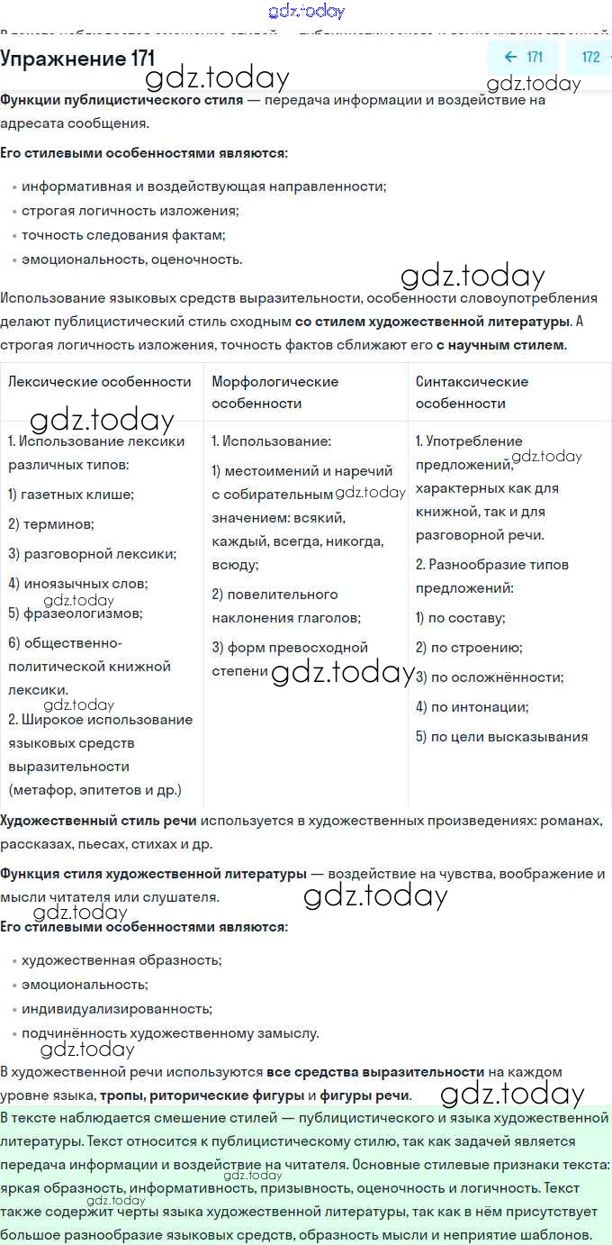 На страницах сайта gdz.today вы найдете учебный и вспомогательный материал, направленный на улучшения знаний школьной программы. ГДЗ - онлайн мир знаний Решение. Упражнения 171 Учебнику по Русскому языку для 11 класса Львова, Львов Базовый и углубленный уровень Мнемозина 2016