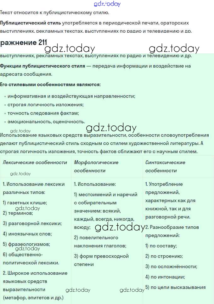 На страницах сайта gdz.today вы найдете учебный и вспомогательный материал, направленный на улучшения знаний школьной программы. ГДЗ - онлайн мир знаний Решение. Упражнения 211 Учебнику по Русскому языку для 11 класса Львова, Львов Базовый и углубленный уровень Мнемозина 2016