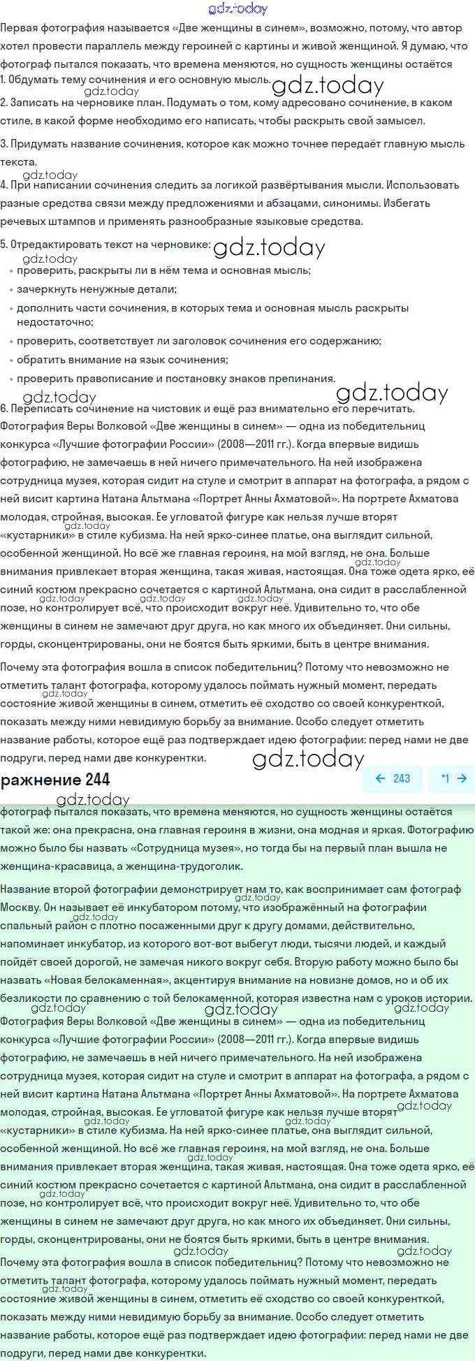 На страницах сайта gdz.today вы найдете учебный и вспомогательный материал, направленный на улучшения знаний школьной программы. ГДЗ - онлайн мир знаний Решение. Упражнения 244 Учебнику по Русскому языку для 11 класса Львова, Львов Базовый и углубленный уровень Мнемозина 2016