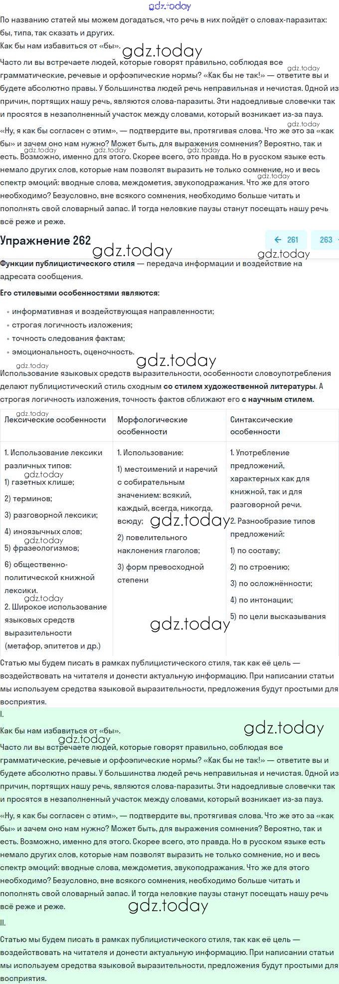 На страницах сайта gdz.today вы найдете учебный и вспомогательный материал, направленный на улучшения знаний школьной программы. ГДЗ - онлайн мир знаний Решение. Упражнения 262 Учебнику по Русскому языку для 11 класса Львова, Львов Базовый и углубленный уровень Мнемозина 2016