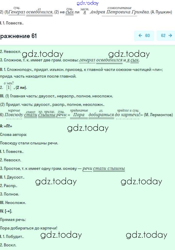 На страницах сайта gdz.today вы найдете учебный и вспомогательный материал, направленный на улучшения знаний школьной программы. ГДЗ - онлайн мир знаний Решение. Упражнения 61 Учебнику по Русскому языку для 11 класса Львова, Львов Базовый и углубленный уровень Мнемозина 2016