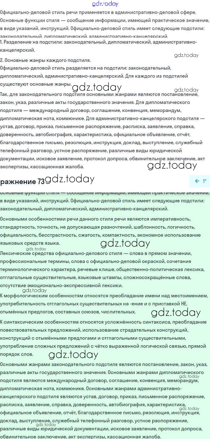 На страницах сайта gdz.today вы найдете учебный и вспомогательный материал, направленный на улучшения знаний школьной программы. ГДЗ - онлайн мир знаний Решение. Упражнения 73 Учебнику по Русскому языку для 11 класса Львова, Львов Базовый и углубленный уровень Мнемозина 2016