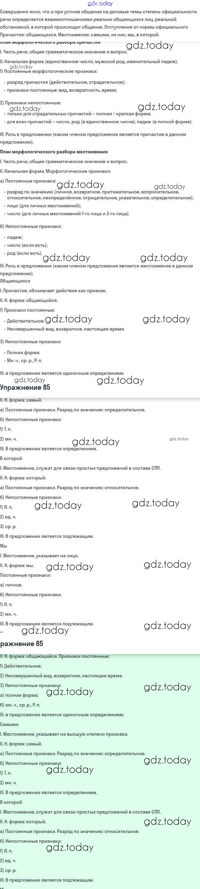 На страницах сайта gdz.today вы найдете учебный и вспомогательный материал, направленный на улучшения знаний школьной программы. ГДЗ - онлайн мир знаний Решение. Упражнения 85 Учебнику по Русскому языку для 11 класса Львова, Львов Базовый и углубленный уровень Мнемозина 2016