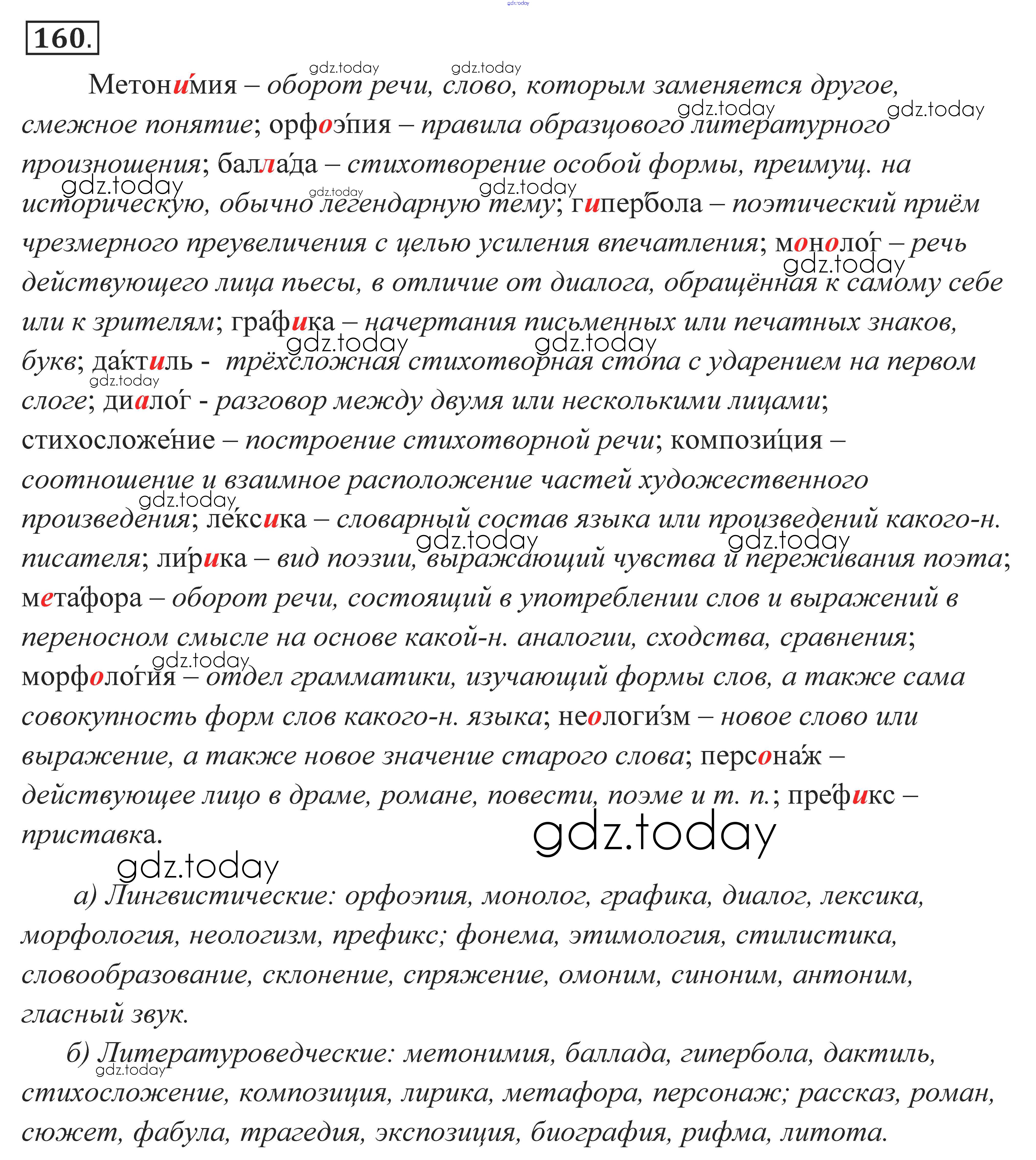 На страницах сайта gdz.today вы найдете учебный и вспомогательный материал, направленный на улучшения знаний школьной программы. ГДЗ - онлайн мир знаний Решение к упражнениям 160 Учебнику по Русскому языку для 10-11 класса Власенков, Рыбченкова Базовый уровень Просвещение 2014
