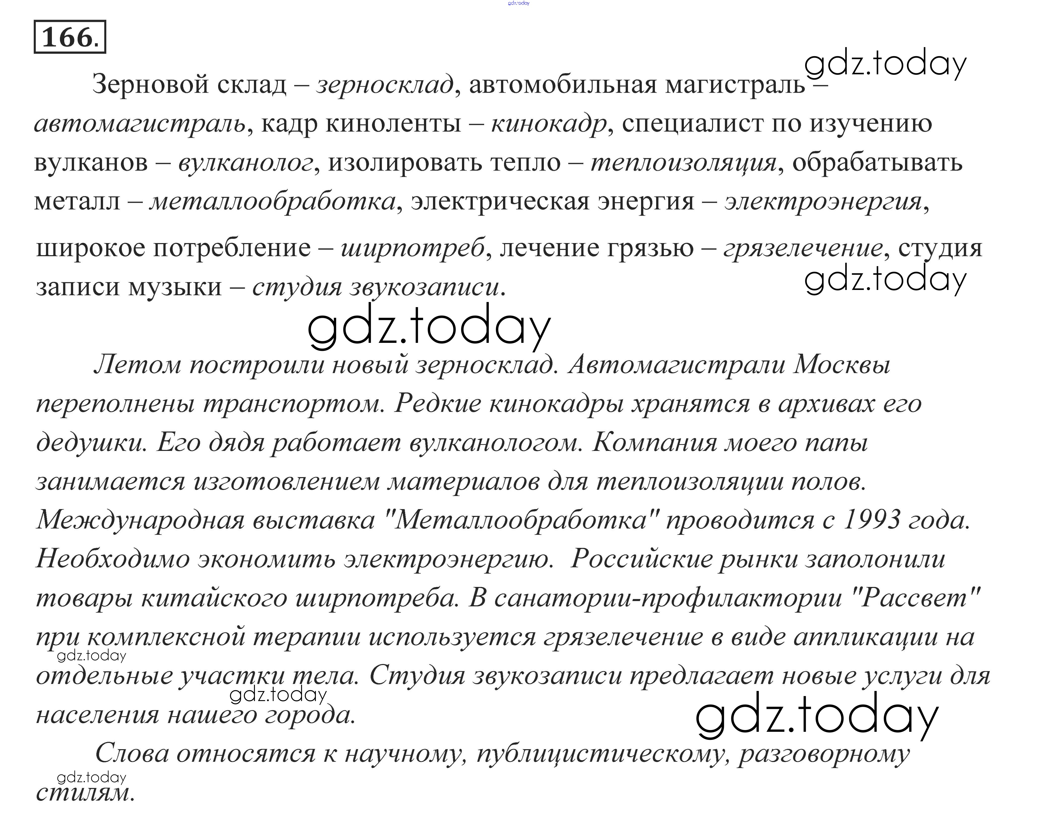 На страницах сайта gdz.today вы найдете учебный и вспомогательный материал, направленный на улучшения знаний школьной программы. ГДЗ - онлайн мир знаний Решение к упражнениям 166 Учебнику по Русскому языку для 10-11 класса Власенков, Рыбченкова Базовый уровень Просвещение 2014