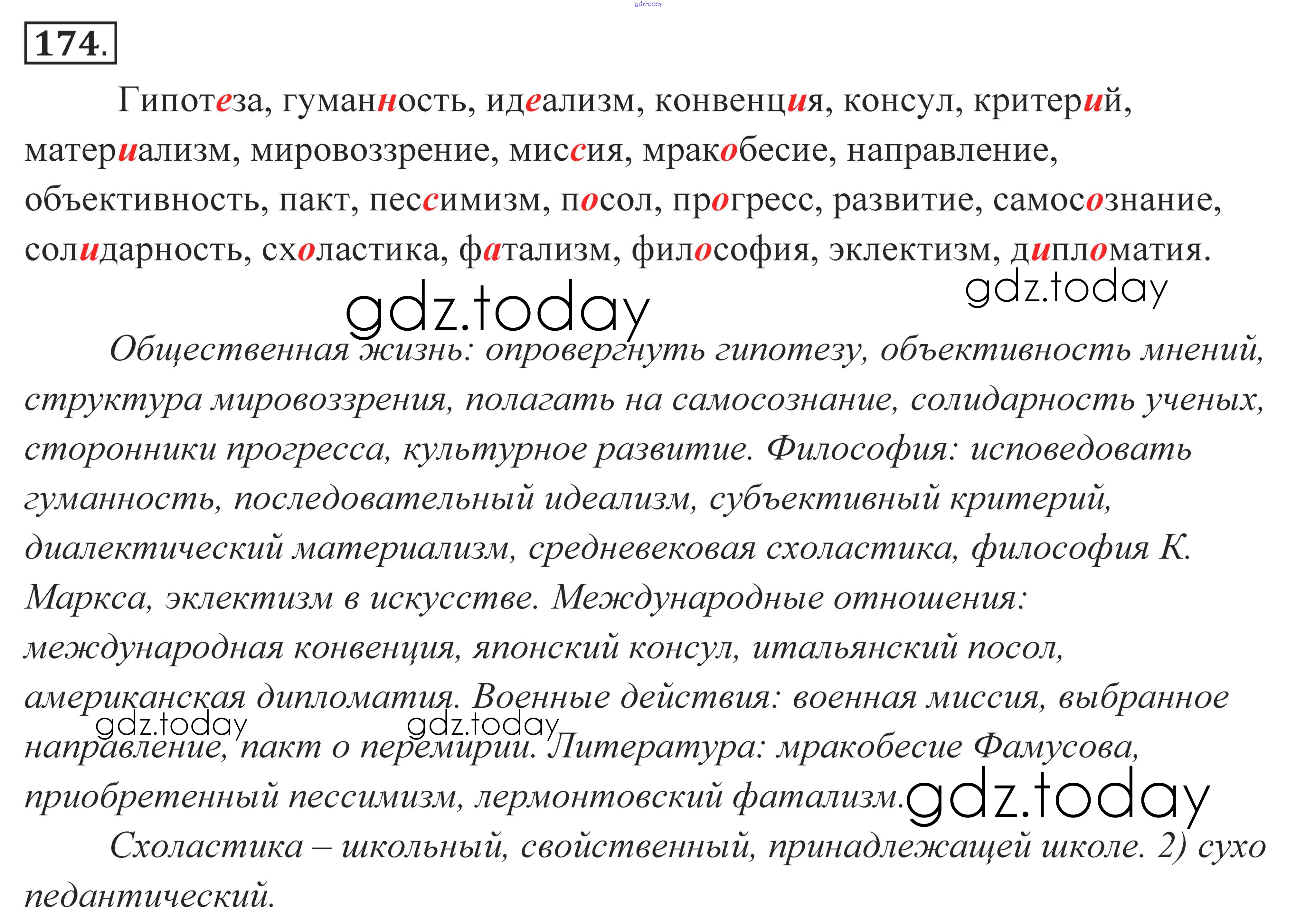 На страницах сайта gdz.today вы найдете учебный и вспомогательный материал, направленный на улучшения знаний школьной программы. ГДЗ - онлайн мир знаний Решение к упражнениям 174 Учебнику по Русскому языку для 10-11 класса Власенков, Рыбченкова Базовый уровень Просвещение 2014