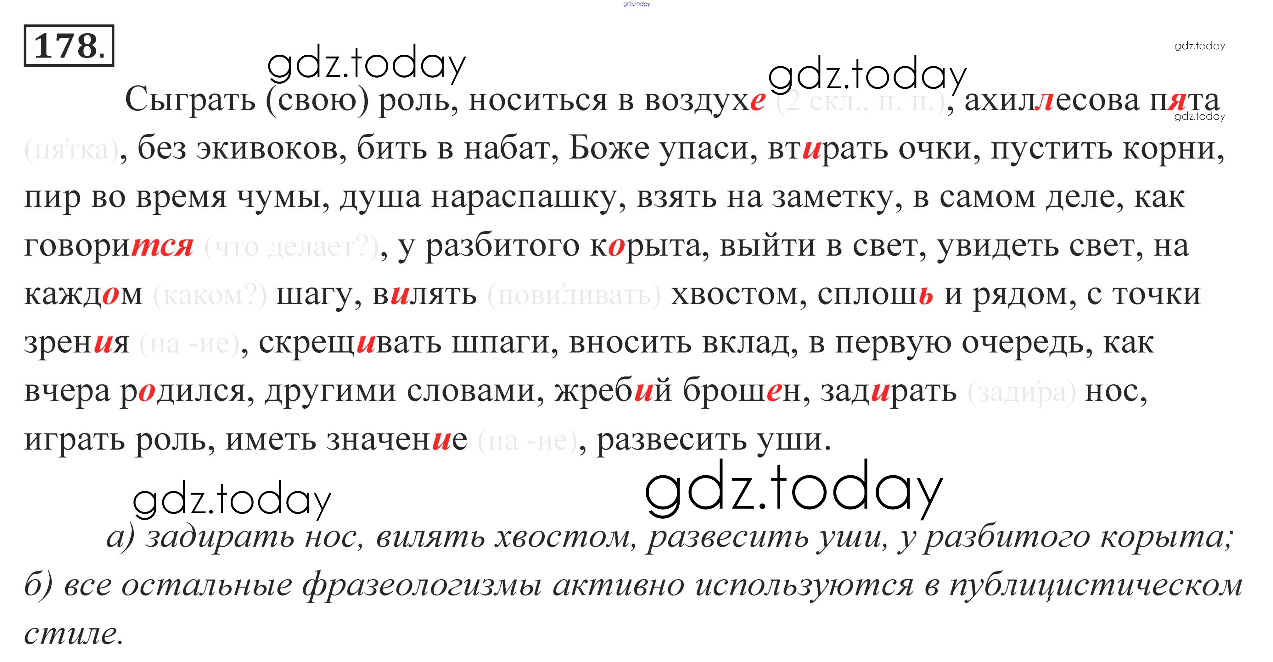На страницах сайта gdz.today вы найдете учебный и вспомогательный материал, направленный на улучшения знаний школьной программы. ГДЗ - онлайн мир знаний Решение к упражнениям 178 Учебнику по Русскому языку для 10-11 класса Власенков, Рыбченкова Базовый уровень Просвещение 2014