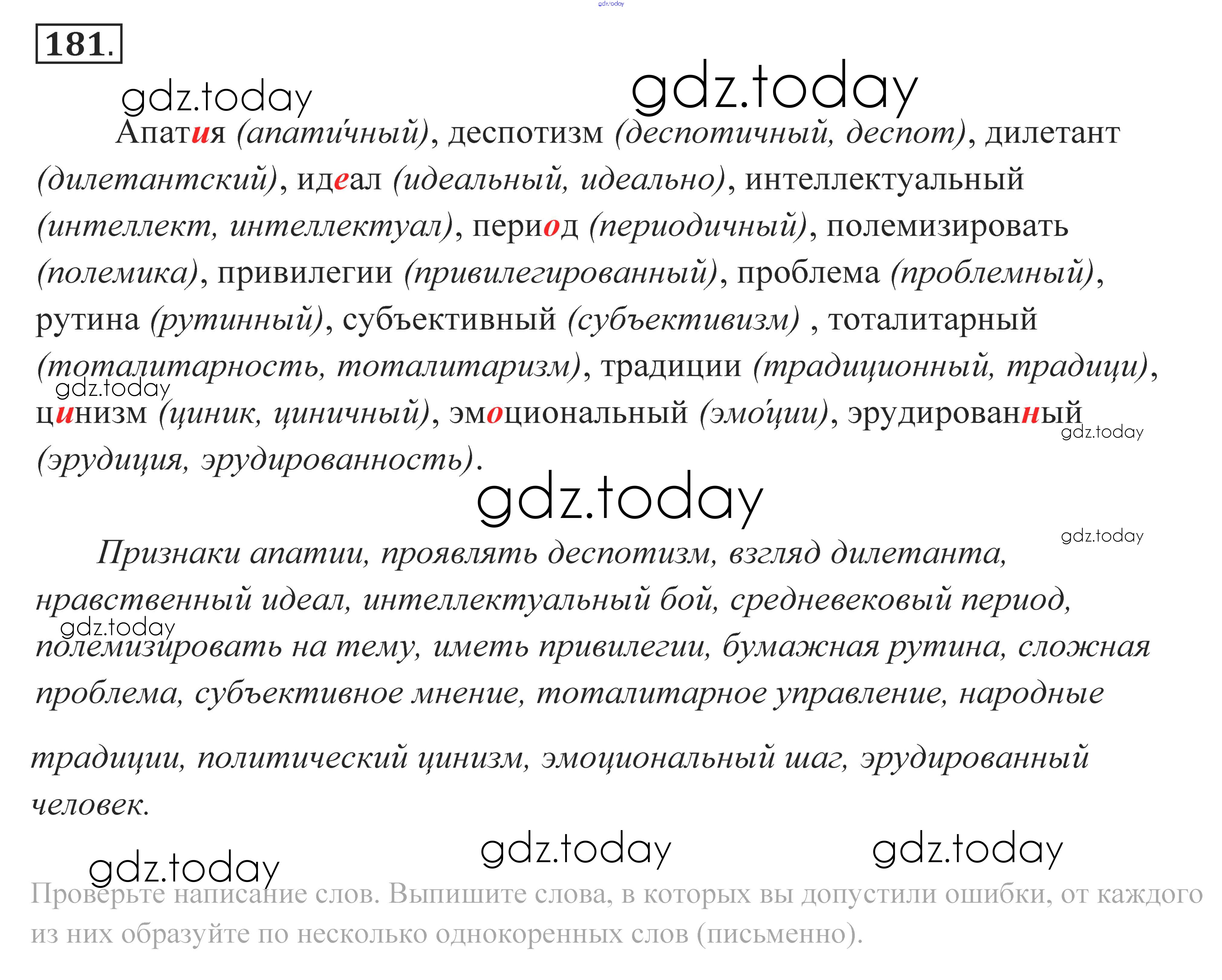 На страницах сайта gdz.today вы найдете учебный и вспомогательный материал, направленный на улучшения знаний школьной программы. ГДЗ - онлайн мир знаний Решение к упражнениям 181 Учебнику по Русскому языку для 10-11 класса Власенков, Рыбченкова Базовый уровень Просвещение 2014
