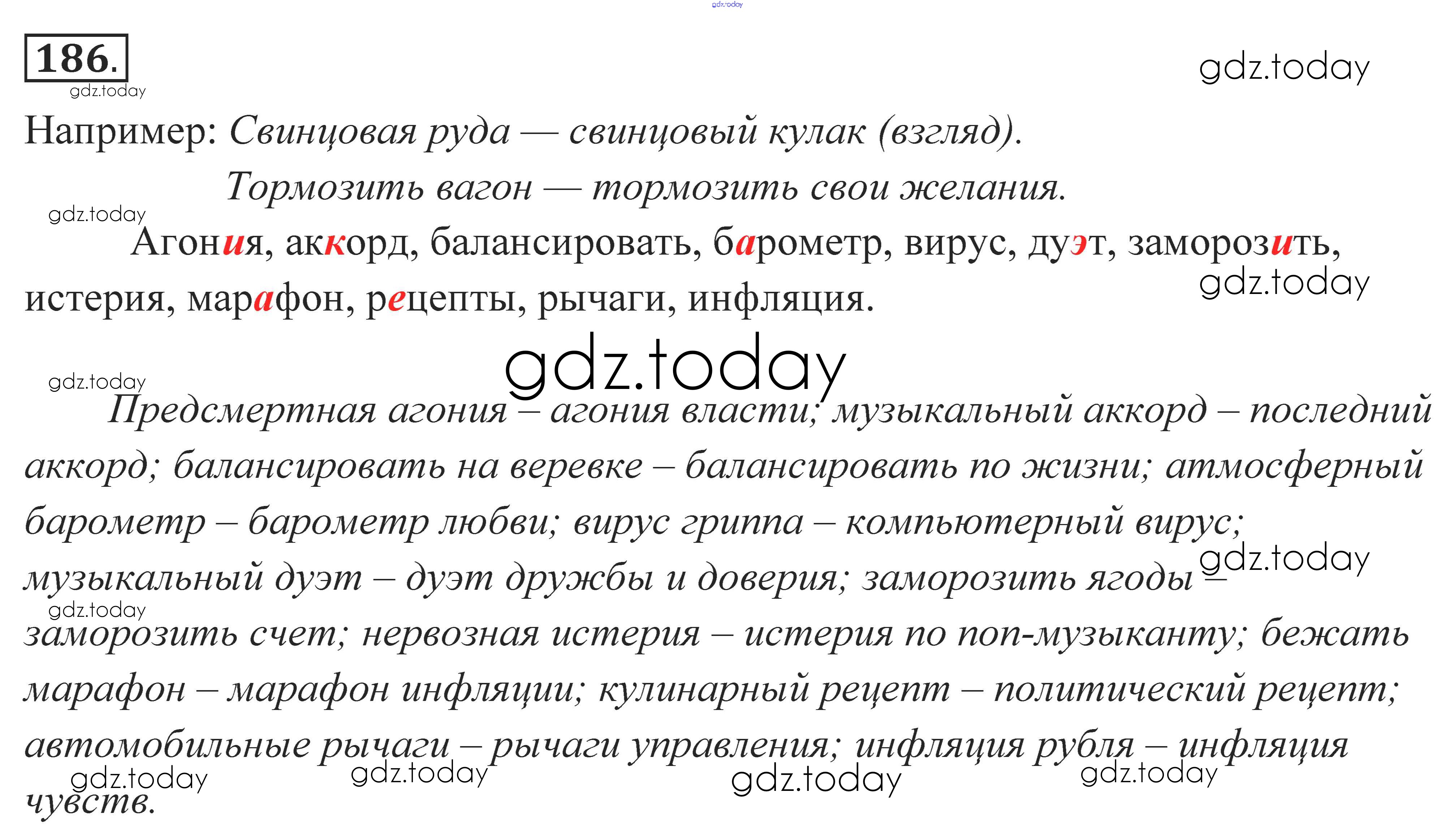 На страницах сайта gdz.today вы найдете учебный и вспомогательный материал, направленный на улучшения знаний школьной программы. ГДЗ - онлайн мир знаний Решение к упражнениям 186 Учебнику по Русскому языку для 10-11 класса Власенков, Рыбченкова Базовый уровень Просвещение 2014