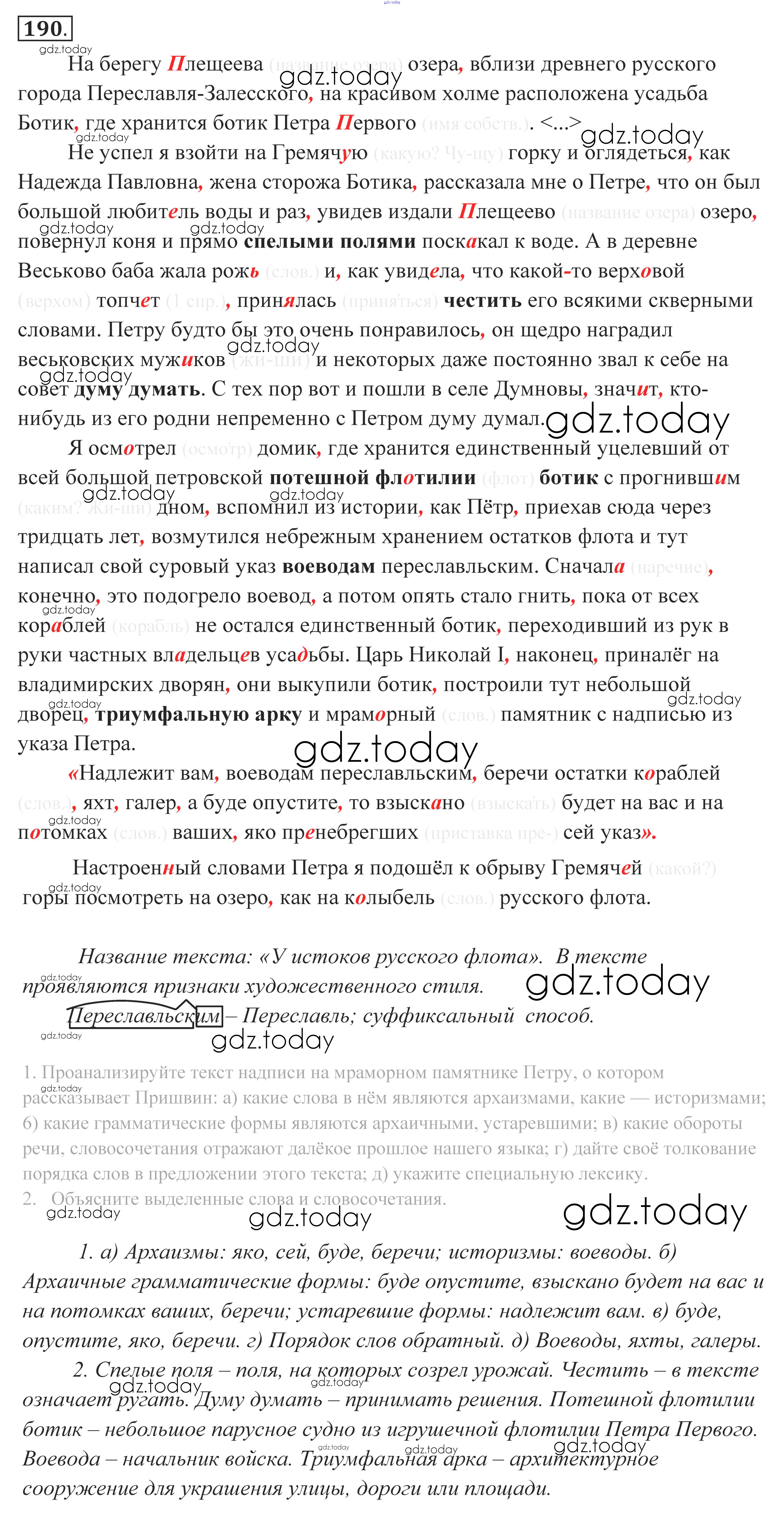 Ответы к Решение к упражнениям 190 Учебнику по Русскому языку для 10-11 класса Власенков, Рыбченкова Базовый уровень Просвещение 2014