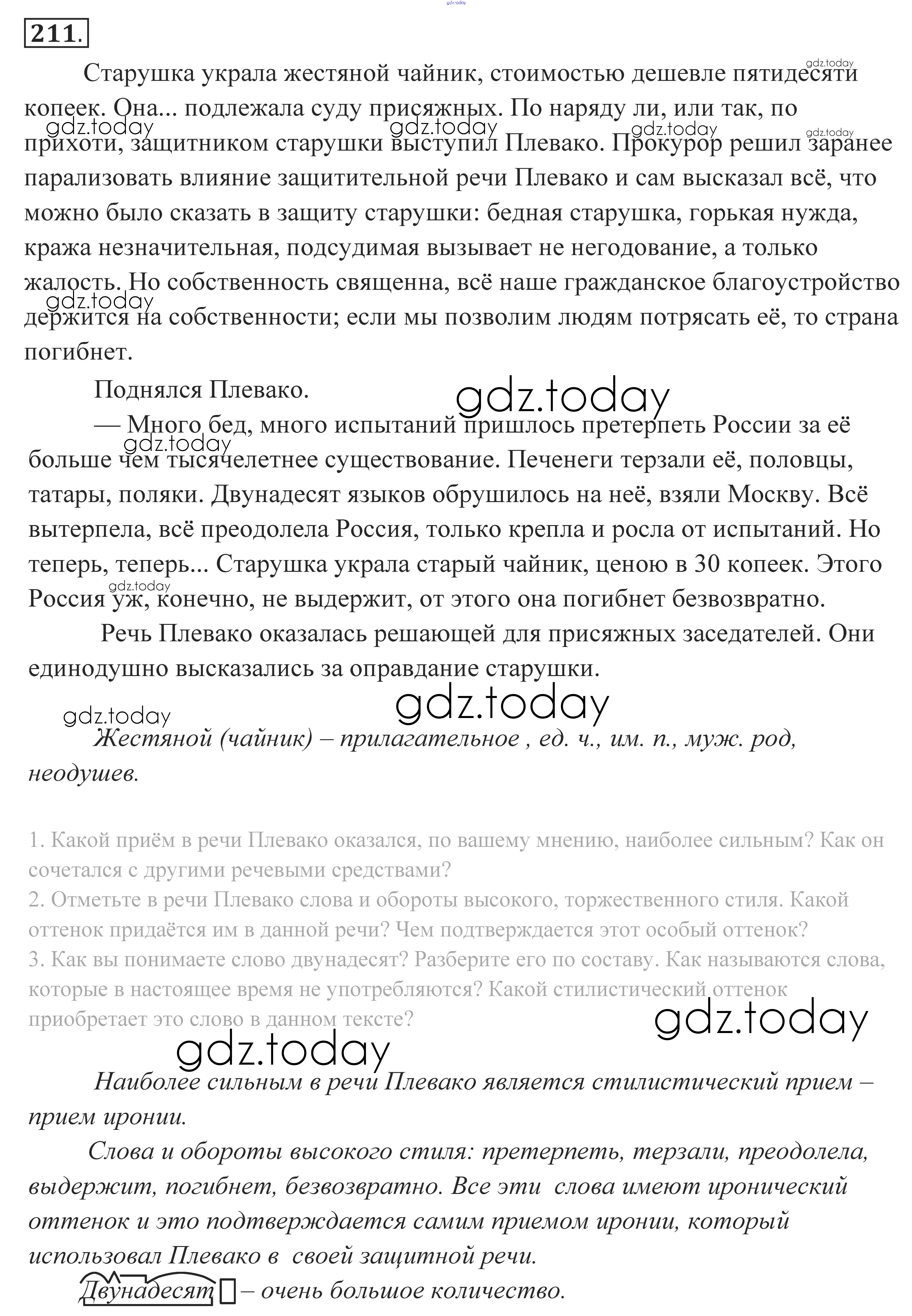 На страницах сайта gdz.today вы найдете учебный и вспомогательный материал, направленный на улучшения знаний школьной программы. ГДЗ - онлайн мир знаний Решение к упражнениям 211 Учебнику по Русскому языку для 10-11 класса Власенков, Рыбченкова Базовый уровень Просвещение 2014