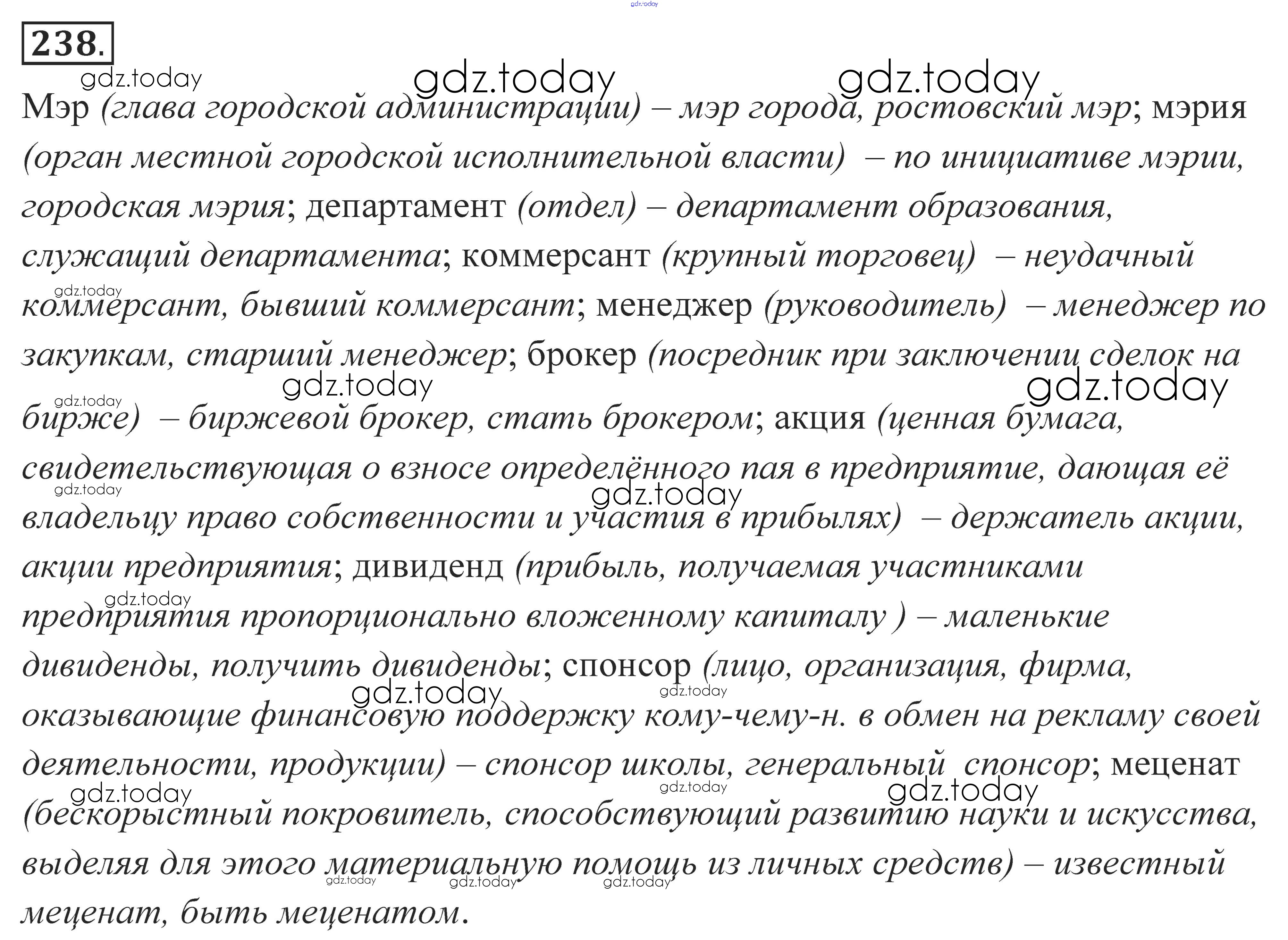 На страницах сайта gdz.today вы найдете учебный и вспомогательный материал, направленный на улучшения знаний школьной программы. ГДЗ - онлайн мир знаний Решение к упражнениям 238 Учебнику по Русскому языку для 10-11 класса Власенков, Рыбченкова Базовый уровень Просвещение 2014