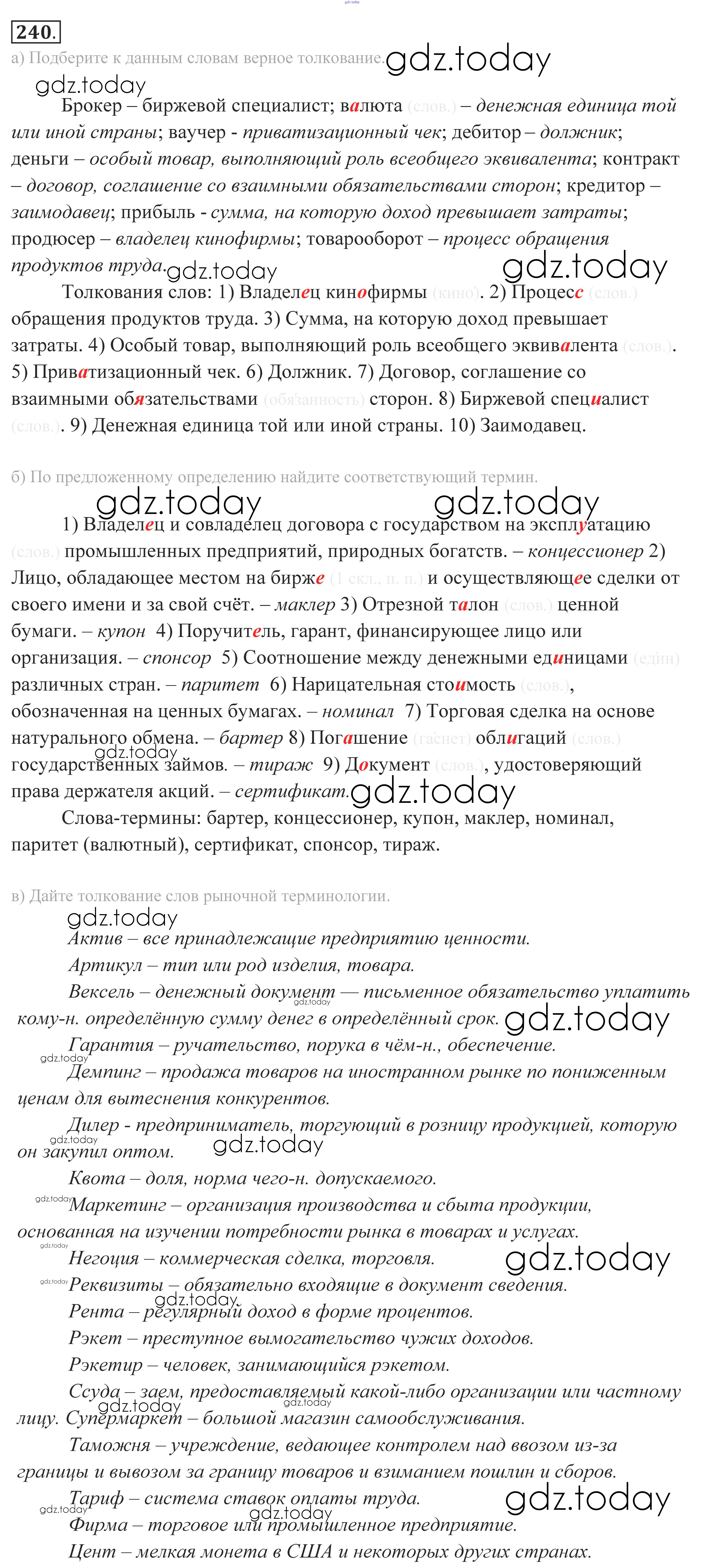 На страницах сайта gdz.today вы найдете учебный и вспомогательный материал, направленный на улучшения знаний школьной программы. ГДЗ - онлайн мир знаний Решение к упражнениям 240 Учебнику по Русскому языку для 10-11 класса Власенков, Рыбченкова Базовый уровень Просвещение 2014
