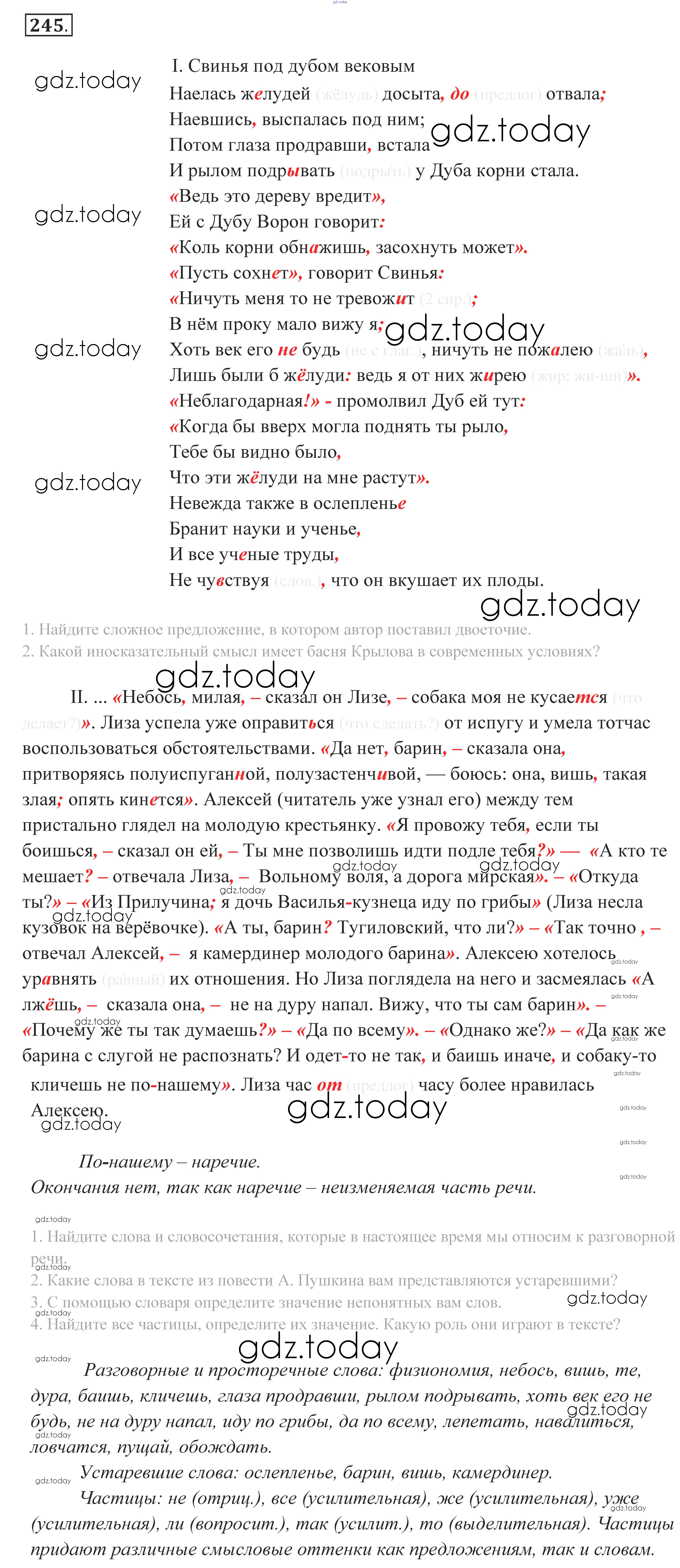 Ответы к Решение к упражнениям 245 Учебнику по Русскому языку для 10-11 класса Власенков, Рыбченкова Базовый уровень Просвещение 2014
