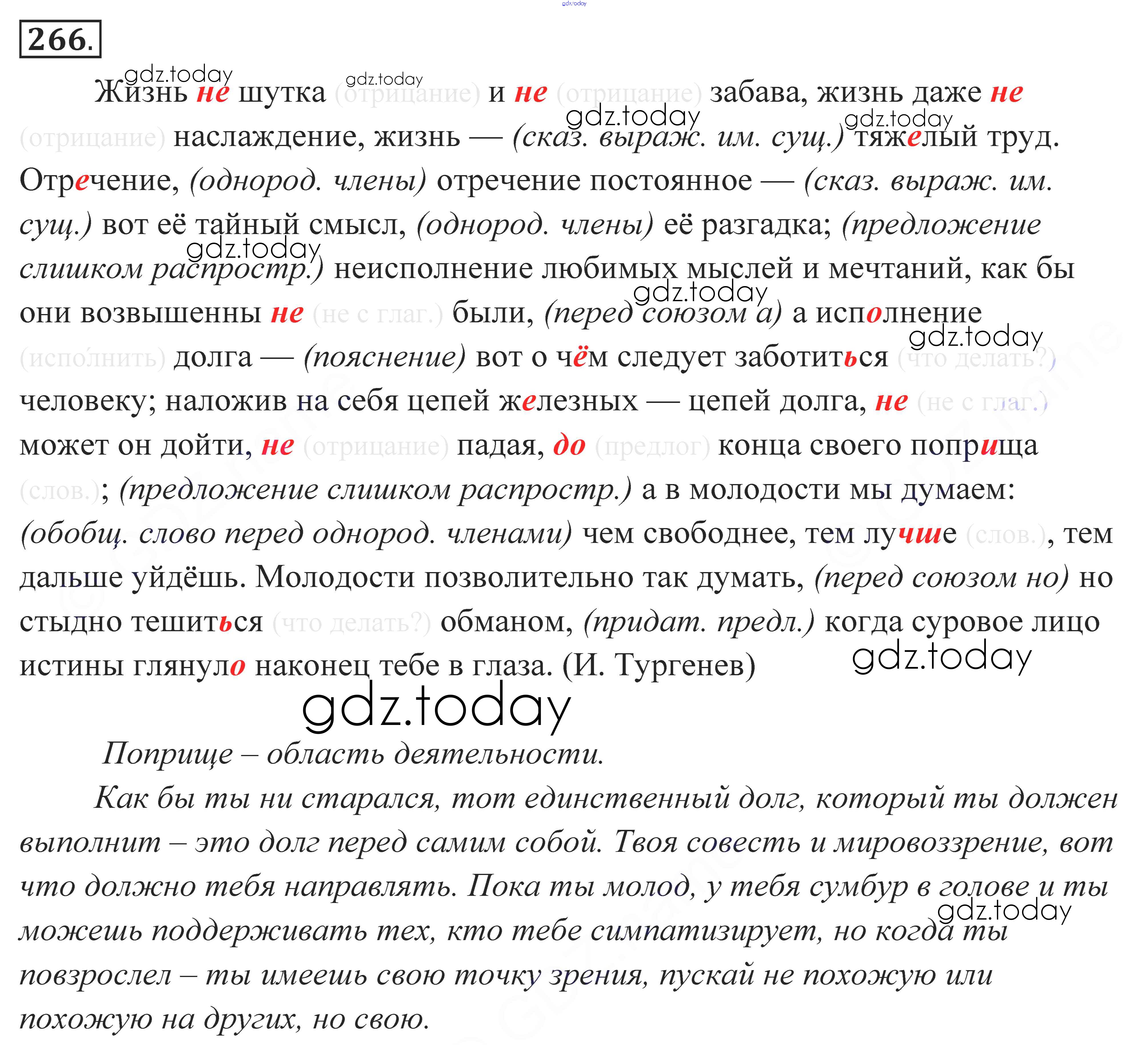 На страницах сайта gdz.today вы найдете учебный и вспомогательный материал, направленный на улучшения знаний школьной программы. ГДЗ - онлайн мир знаний Решение к упражнениям 266 Учебнику по Русскому языку для 10-11 класса Власенков, Рыбченкова Базовый уровень Просвещение 2014
